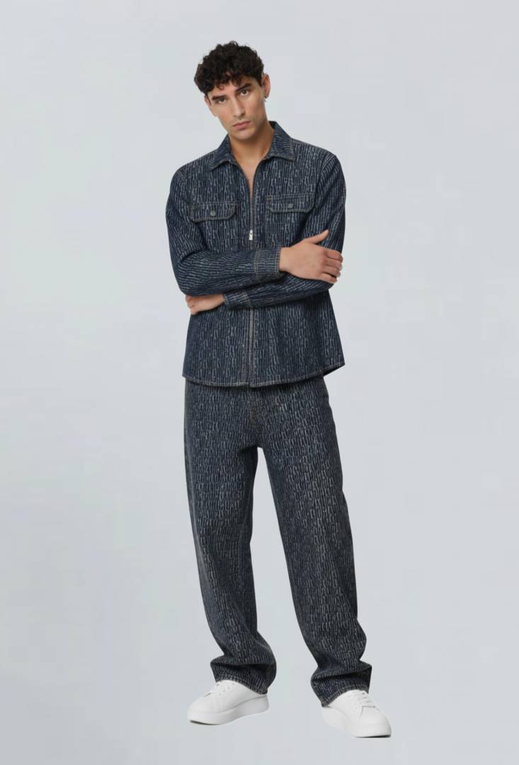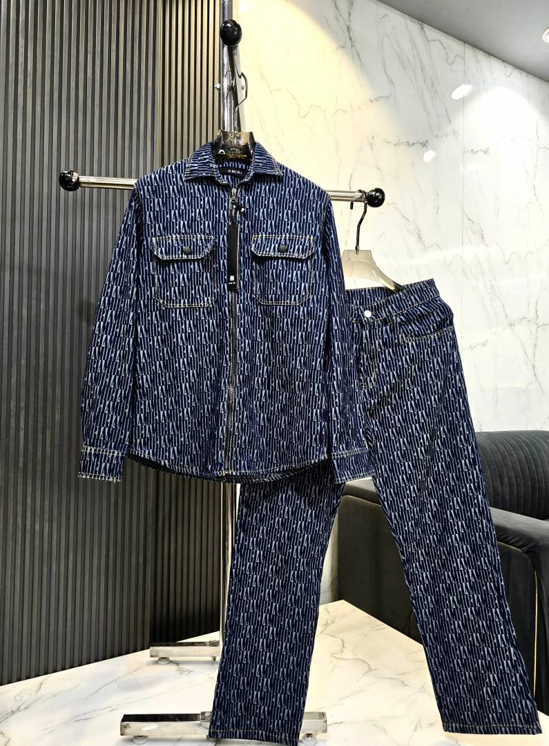 Amir i Blue Imported Monogram Print Super Premium Denim Track Suit F3333-BU