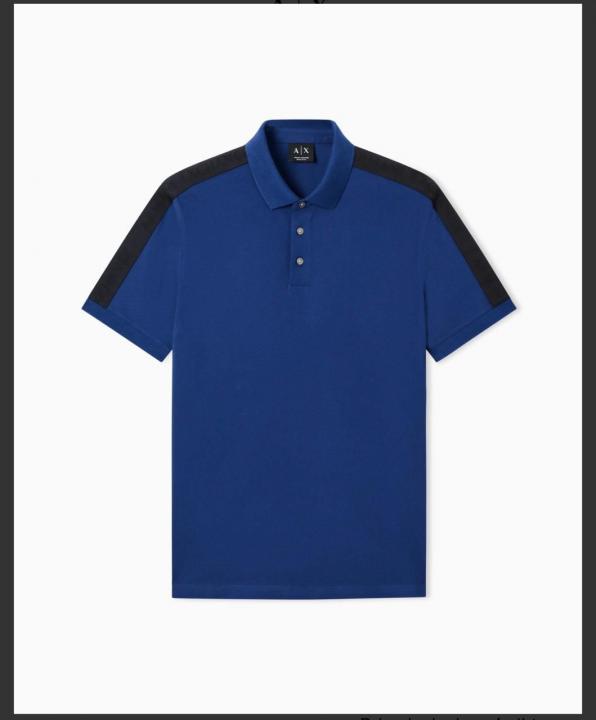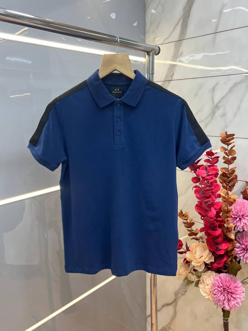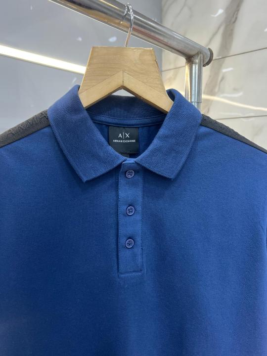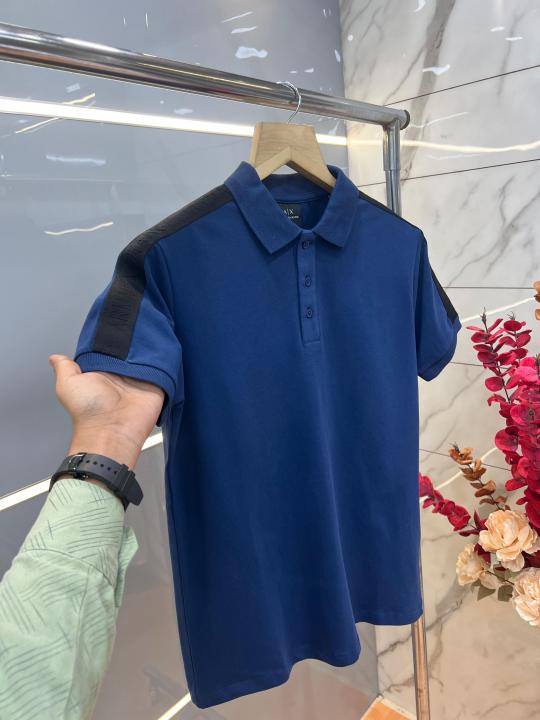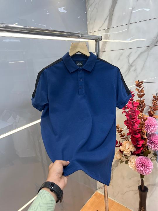 Lacost e Blue Premium Cotton Pique fabric Polo Tshirt with Shoulder Design and Embroidered Logo 3993