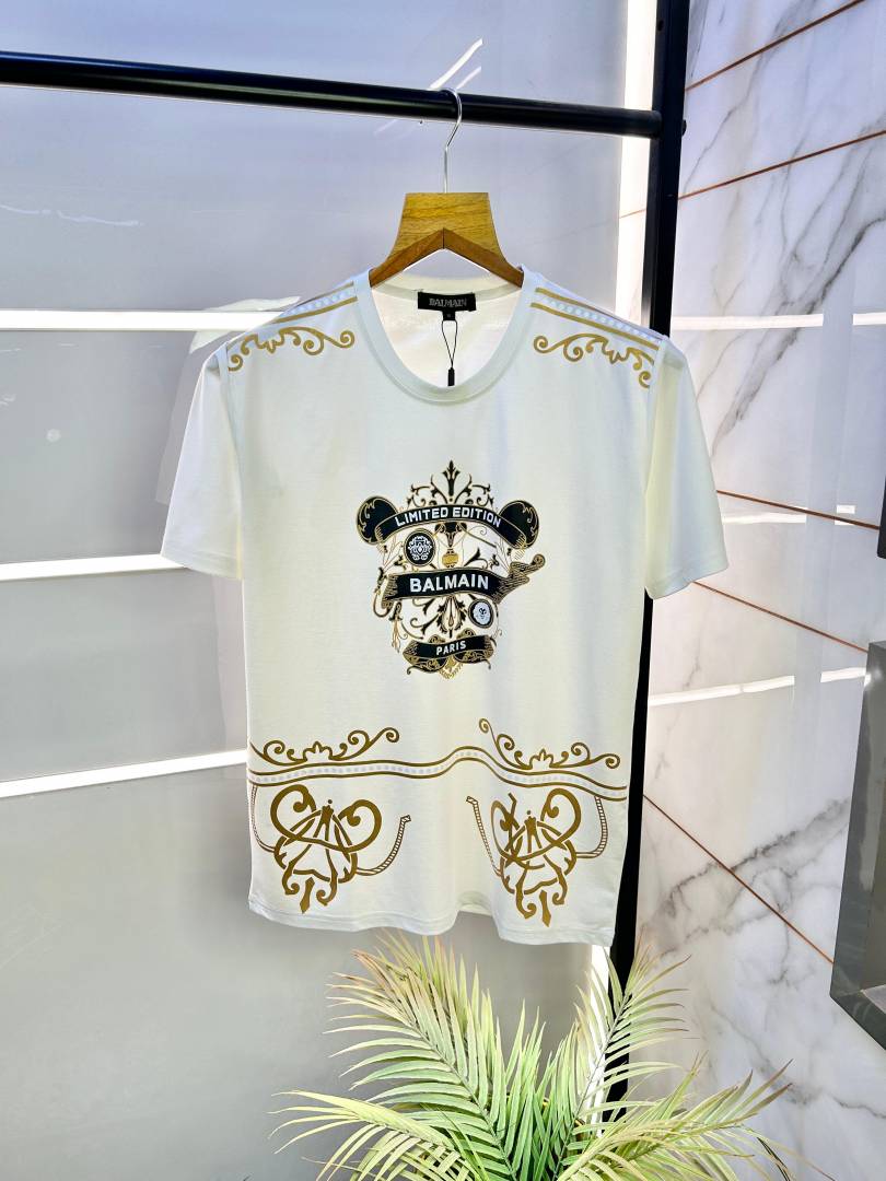 Balmai n Paris Designer Round Neck Super Premium White T-shirt With Brand Carry Bag F1863-WH