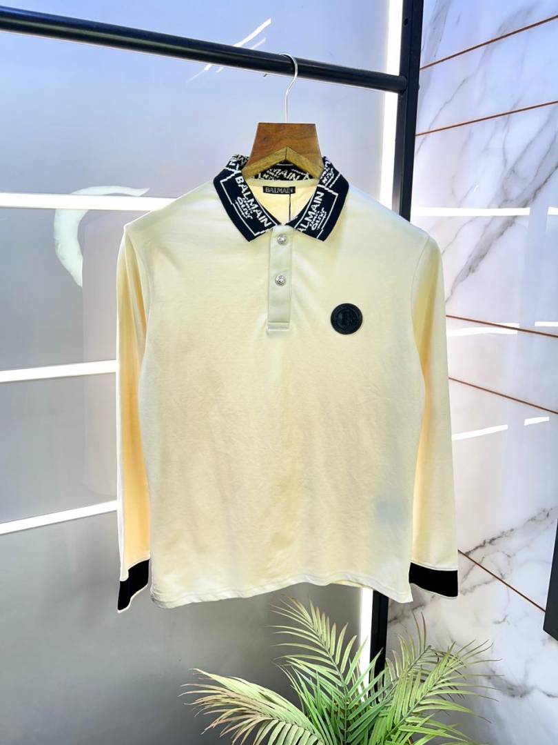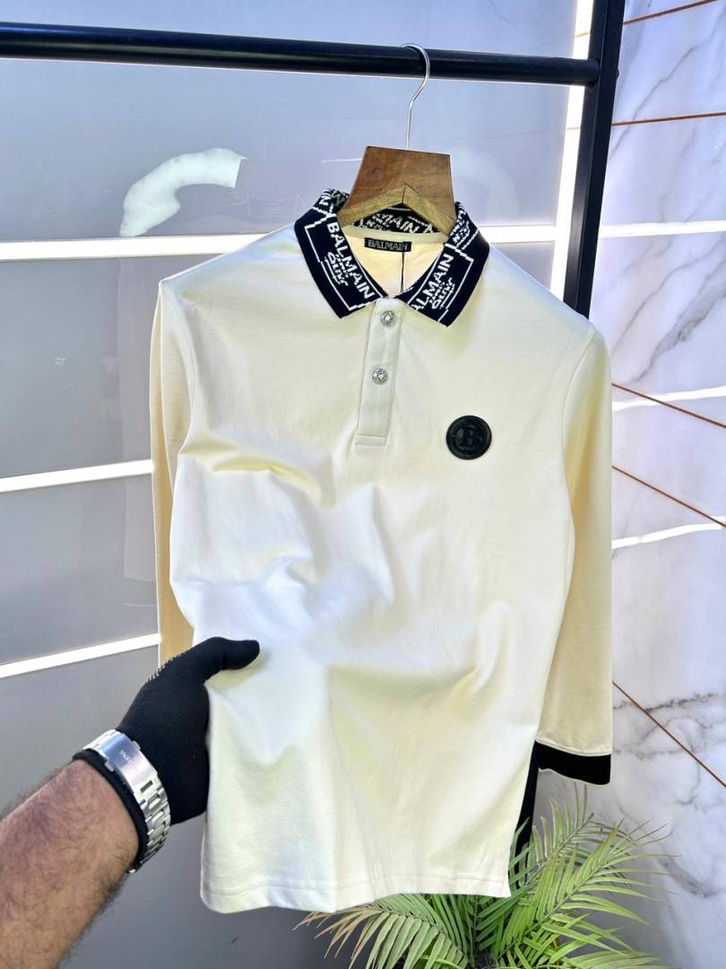Balmai n Paris Off-white Polo Neck Full Sleeves Premium Collar T-shirt F3028-OF1