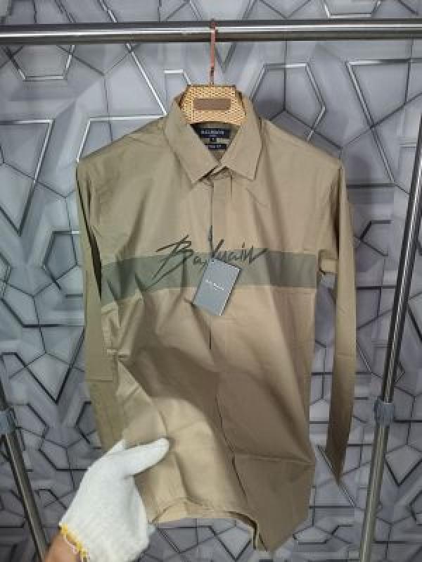 Balmain_Paris_Khaki_Logo_Print_Premium_Shirt_(1500)