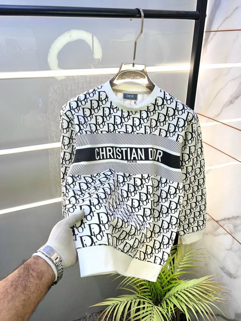 Christian Dio r Imported Monogram Allover Premium White Sweatshirts F3344-W3