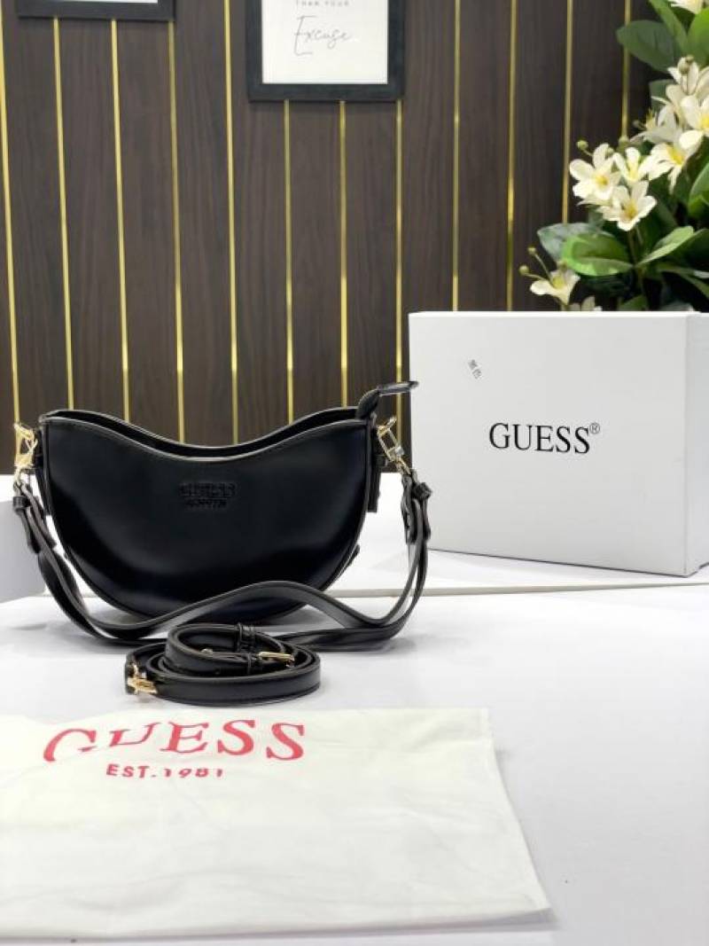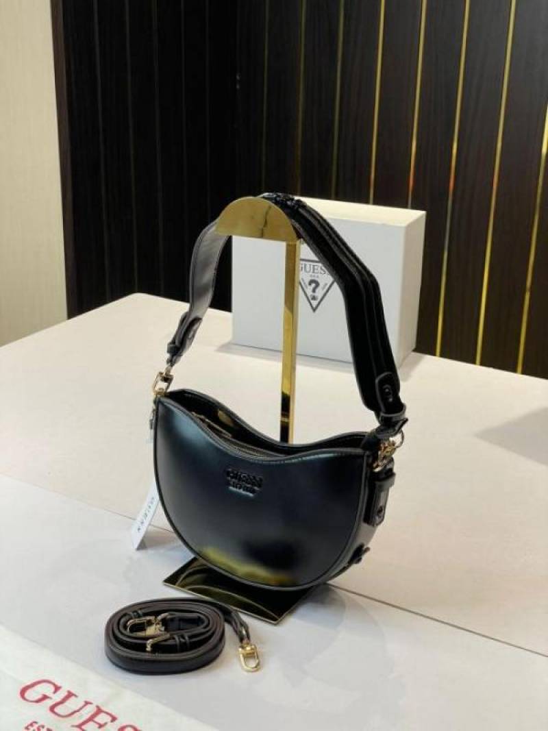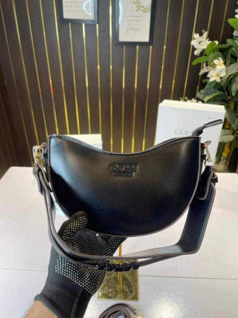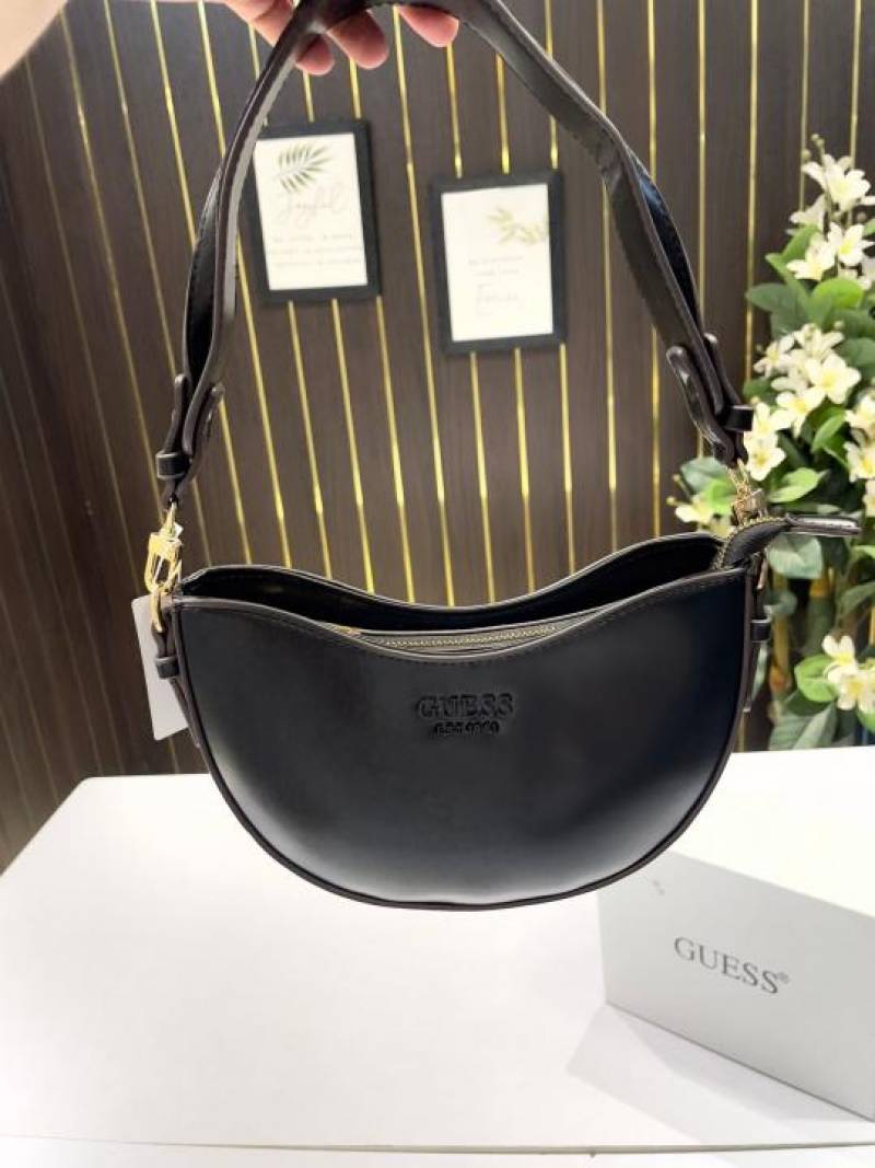 • _Guess_half_moon_top_zipper_shoulder bag with og box(222-black)