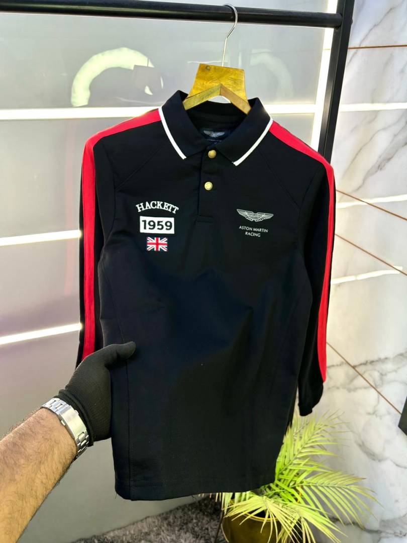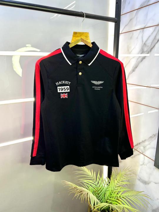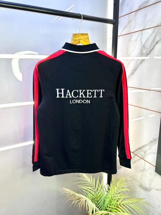 Hacket t Black Polo Neck Back Print Full Sleeves Premium Collar T-shirt F3087-BL