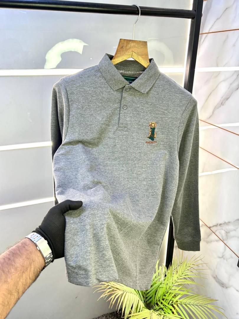 Hacket t Grey Polo Neck Full Sleeves Premium Collar T-shirt F3087-GY