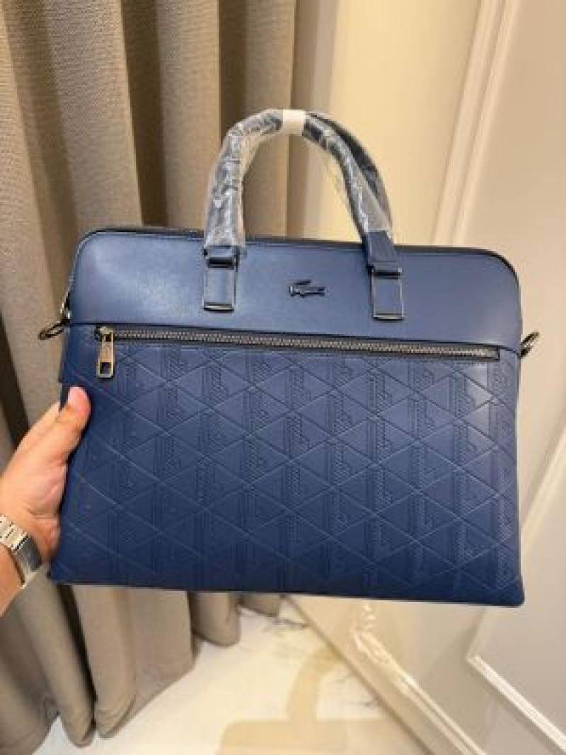 Lacost_e Blue Textured Leather Laptop Bag with Front Zip Pocket (E1970-5)