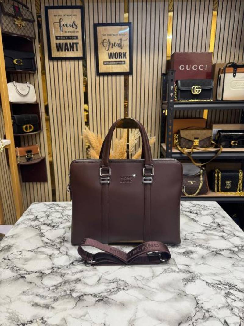 MONT BLANC LAPTOP BAG WITH DUST BAG EXTRA PREMIUM QUALITY (BROWN) W1967-5