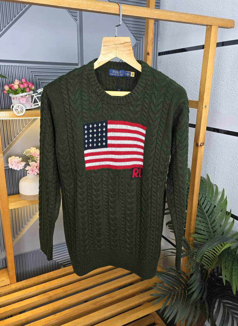 R L ROUND NECK SWEATER OLIVE M445-OL