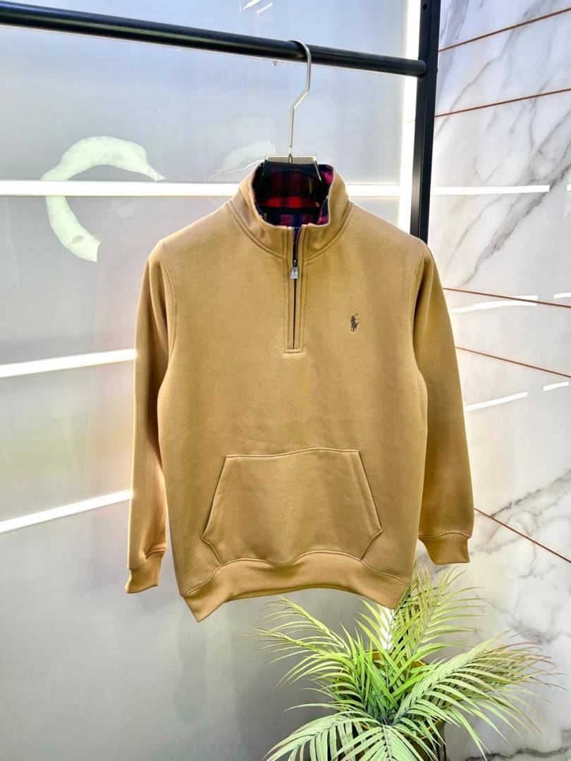 Ralph_Lauren Imported Brown Super Premium Half Zipper Hoodie F3341-BR