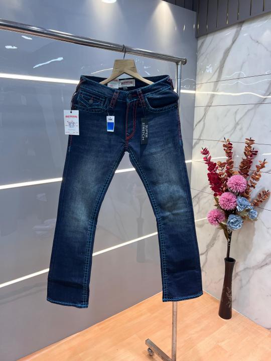 True Religio n Blue Shade Premium Imported Stretchable Lycra Fabric Boot Cut Denim with Embroidered Design 3142