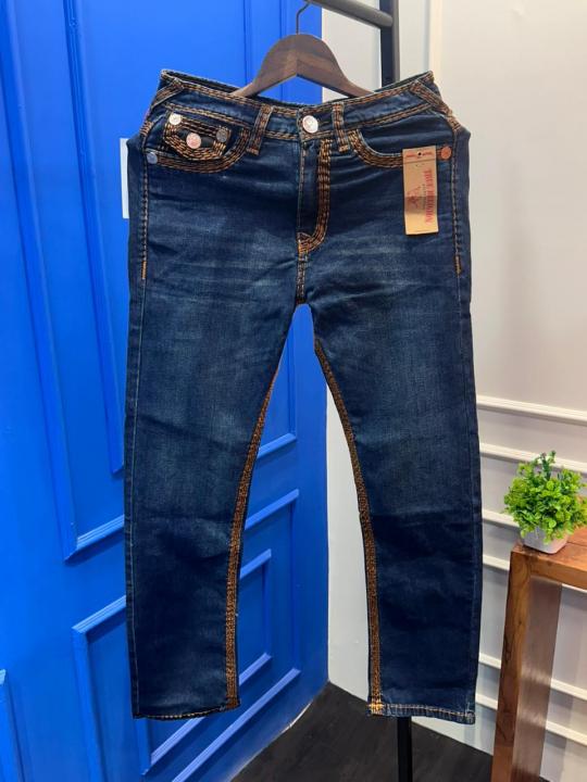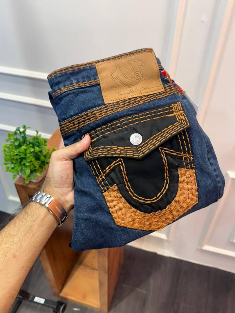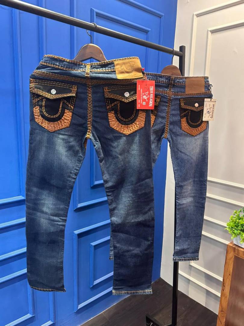 True Religio n Blue Shade Premium Imported Stretchable Lycra Fabric Boot Cut Denim with Embroidered Design 3142